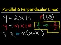 This algebra video tutorial shows you how to write the equation of a line that is parallel and perpendicular to a given that passes through a point. This video shows you how to do it using the slope intercept form of the equation and the point slope form. It also shows you how to take the negative reciprocal of the slope of the given line to find the slope of the perpendicular line. This video contains plenty of examples and practice problems for you to work on.